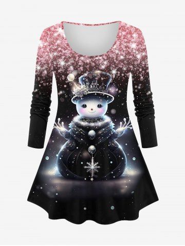 Tops > Plus Size Christmas Snowflake Snowman Sparkling Sequin Glitter 3D Print T-shirt