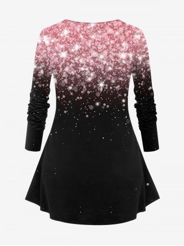 Plus Size Christmas Snowflake Snowman Sparkling Sequin Glitter 3D Print T-shirt - Light Pink - 3x