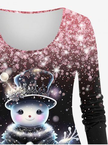 Plus Size Christmas Snowflake Snowman Sparkling Sequin Glitter 3D Print T-shirt - Light Pink - 5x