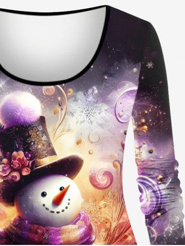 Tops > Plus Size Christmas Snowflake Snowman Tie Dye Ombre Floral Print Long Sleeves T-shirt