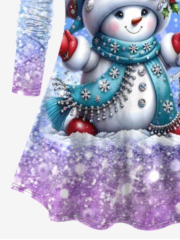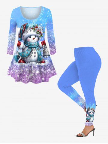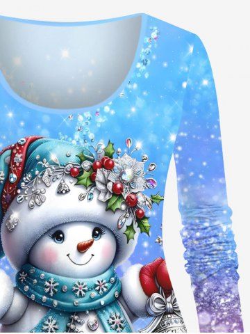 Plus Size Christmas Snowman Bell Holy Fruit Snowflake Glitter 3D Print T-shirt - Light Blue - M