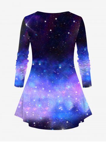 Plus Size Christmas Snowman Galaxy Star Pine Cones Print T-shirt - Blue - 1x