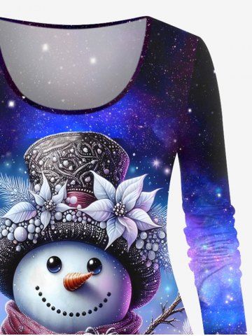 Plus Size Christmas Snowman Galaxy Star Pine Cones Print T-shirt - Blue - 6x