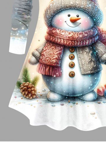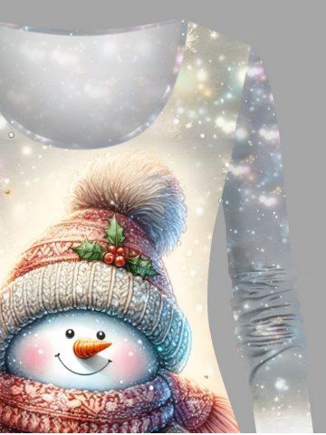 Plus Size Christmas Snowman Hat Scarf Snowflake Star Glitter 3D Print T-shirt - White - Xs