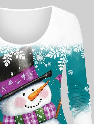 Plus Size Christmas Snowman Snowflake Christmas Print T-shirt - Green - 1x