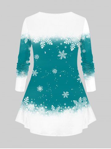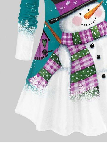 Plus Size Christmas Snowman Snowflake Christmas Print T-shirt - Green - 5x