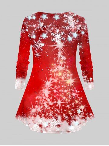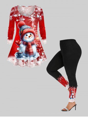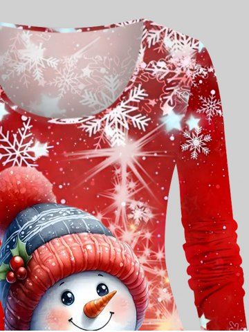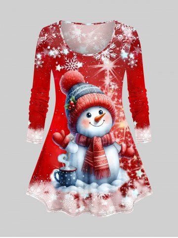 Plus Size Christmas Snowman Snowflake Cup Print T-shirt - Red - L