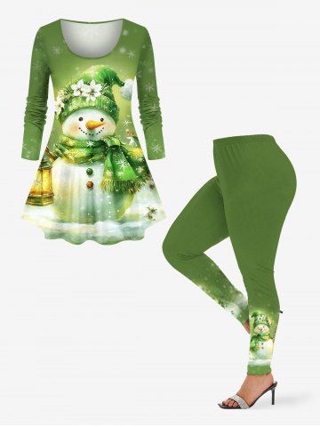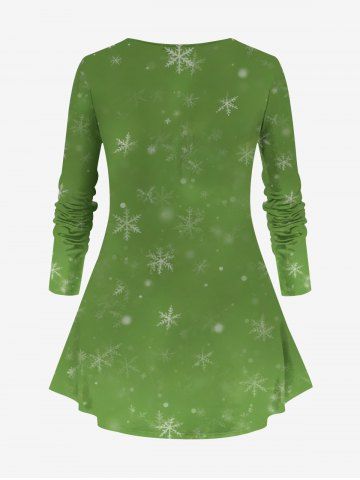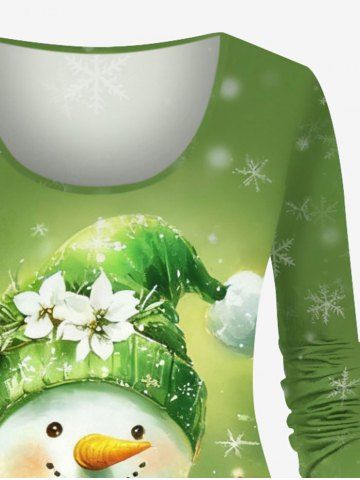 Plus Size Christmas Snowman Snowflake Flowers Print Long Sleeve T-shirt - Green - 6x