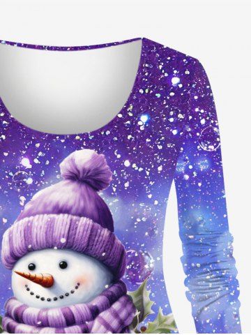 Plus Size Christmas Snowman Snowflake Galaxy Star Glitter Sparkling Sequin 3D Print T-shirt - Purple - 4x