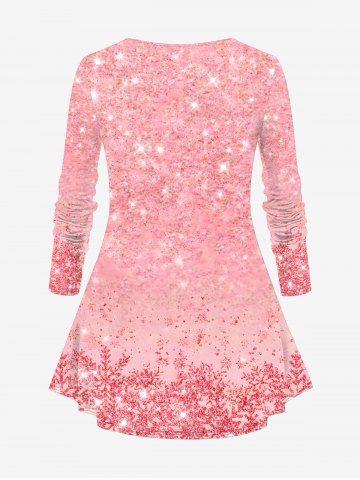 Plus Size Christmas Snowman Snowflake Holy Fruit Sparkling Sequin Glitter 3D Print T-shirt - Light Pink - 5x