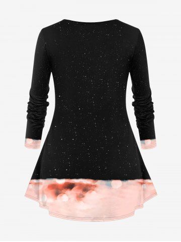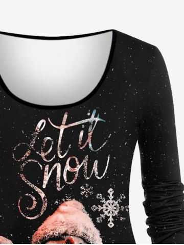 Plus Size Christmas Snowman Snowflake Light Glitter 3D Print Long Sleeve T-shirt - Black - S