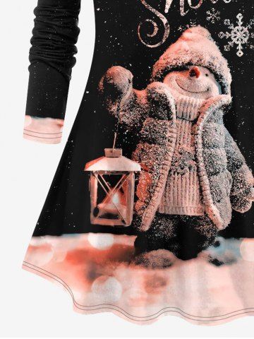 Plus Size Christmas Snowman Snowflake Light Glitter 3D Print Long Sleeve T-shirt - Black - 4x