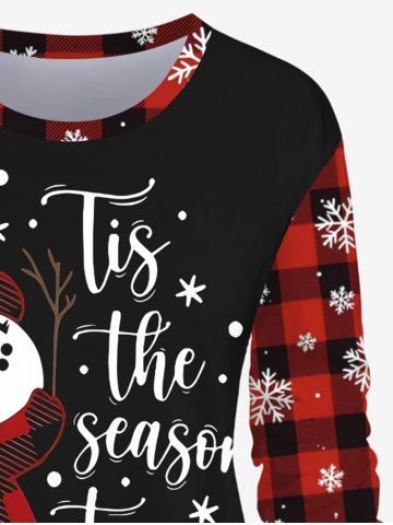 Plus Size Christmas Snowman Snowflake Plaid Print Sweatshirt - Red - 7xl