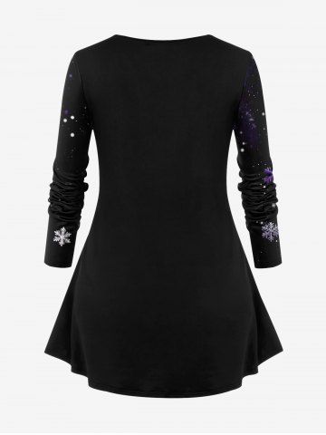 Plus Size Christmas Snowman Snowflake Print Long Sleeves T-shirt - Black - L
