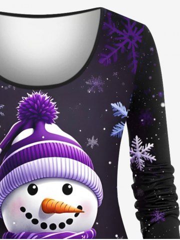 Plus Size Christmas Snowman Snowflake Print Long Sleeves T-shirt - Black - 4x