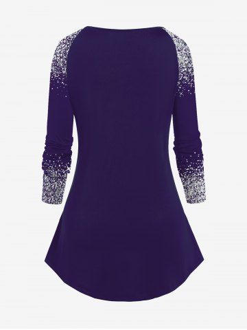 Plus Size Christmas Snowman Snowflake Sparkling Sequin Glitter 3D Print T-shirt - Concord - 4x
