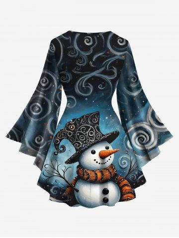 Plus Size Christmas Snowman Spiral Ombre Print Long Sleeves Lattice T-shirt - Black - 4x