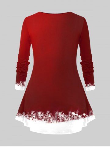 Plus Size Christmas Stocking Snowman Snowflake Owl Glitter 3D Print T-shirt - Deep Red - 3x