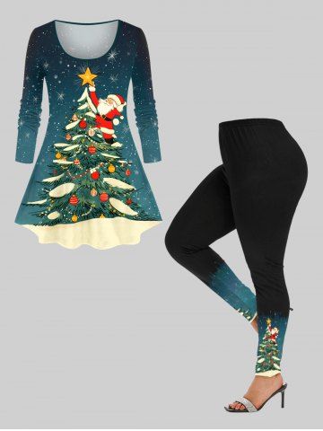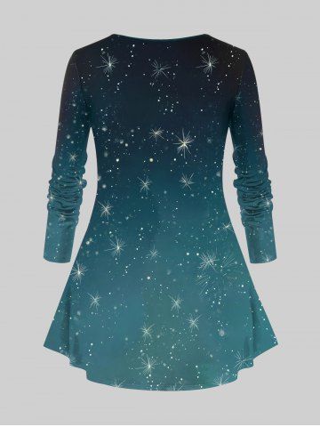Plus Size Christmas Tree Ball Santa Claus Glitter Ombre Galaxy Print Long Sleeves T-shirt - Green - 1x