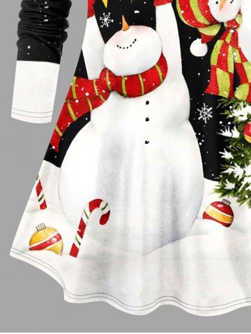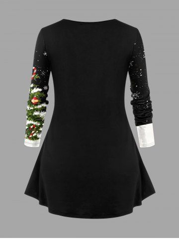Plus Size Christmas Tree Ball Snowflake Snowman Candy Print Long Sleeves Women T-shirt - Black - 4x