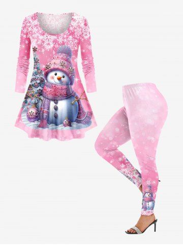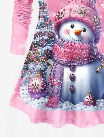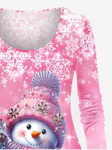 Plus Size Christmas Tree Ball Snowman Snowflake Print T-shirt - Light Pink - L