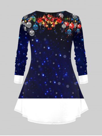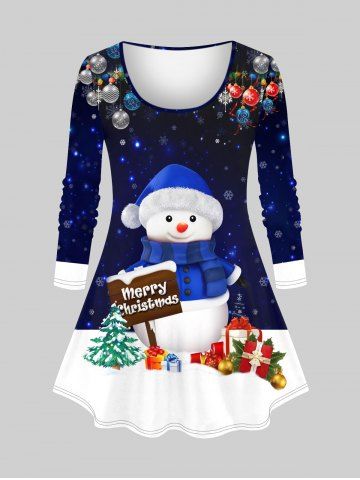 Plus Size Christmas Tree Ball Snowman Snowflake Star Sparkling Sequin Glitter 3D Print Long Sleeve T-shirt - Deep Blue - M
