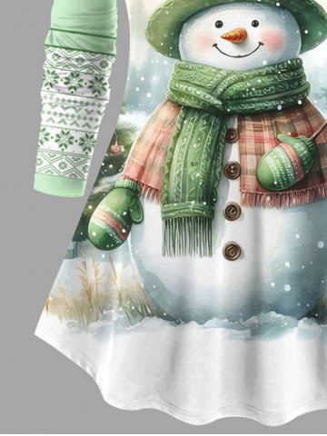 Plus Size Christmas Tree Ball Snowman Snowflake Zig Zag Geometric Floral Print Raglan Sleeve T-shirt - Green - S