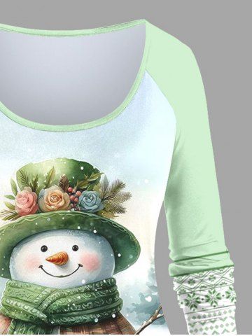 Plus Size Christmas Tree Ball Snowman Snowflake Zig Zag Geometric Floral Print Raglan Sleeve T-shirt - Green - 4x