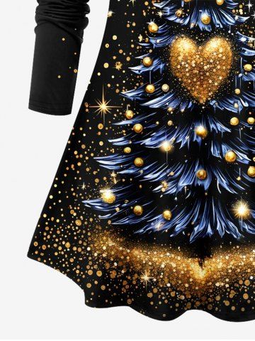 Plus Size Christmas Tree Ball Star Heart Glitter 3D Print Long Sleeves T-shirt - Black - M