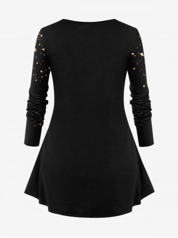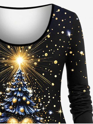 Plus Size Christmas Tree Ball Star Heart Glitter 3D Print Long Sleeves T-shirt - Black - 6x