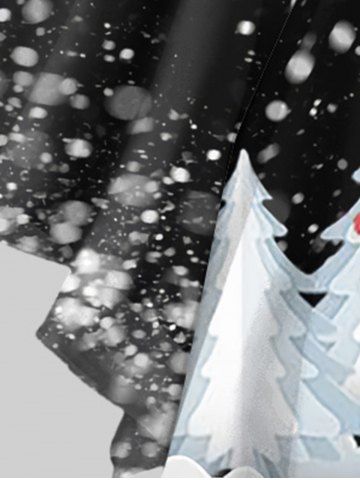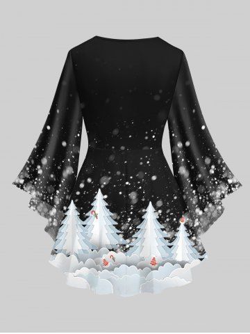 Plus Size Christmas Tree Ball Stocking Snowflake Print Flare Sleeves Lattice Top - Black - L