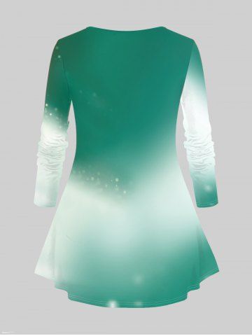 Plus Size Christmas Tree Bell Ball Print Long Sleeve Tee - Green - 3x | Us 22-24