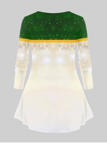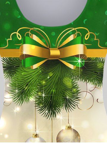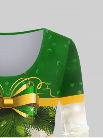 Plus Size Christmas Tree Bowknot Ball Print T-shirt - Green - M | Us 10
