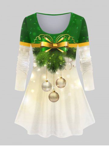 Tops > Plus Size Christmas Tree Bowknot Ball Print T-shirt