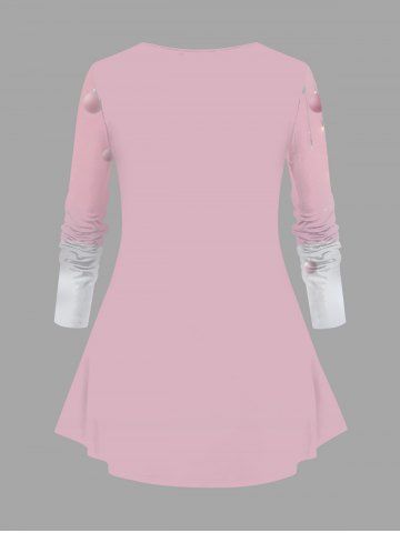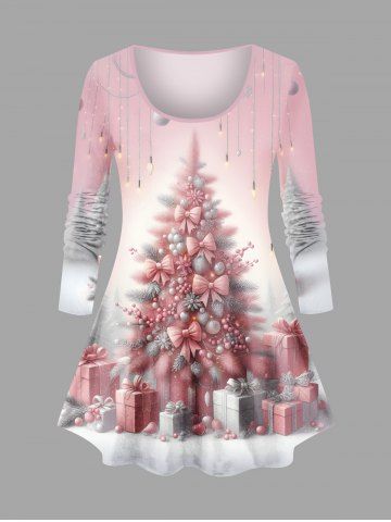 Plus Size Christmas Tree Bowknot Gift Box Light Tassel Print Long Sleeves T-shirt - Light Pink - 2x
