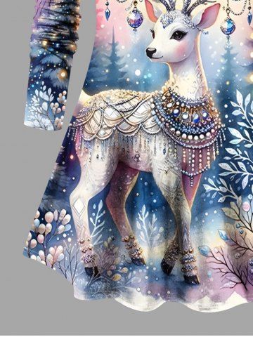 Plus Size Christmas Tree Elk Light Glitter 3D Print T-shirt - Multi-a - M
