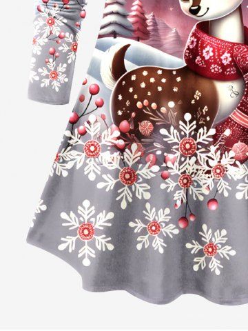 Tops > Plus Size Christmas Tree Elk Snowflake Flowers Print Long Sleeves T-shirt