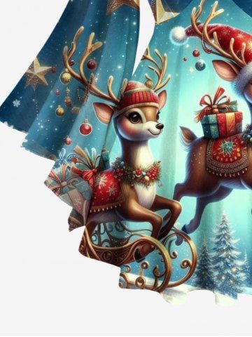 Plus Size Christmas Tree Elk Snowflake Ombre Print Lattice Long Sleeves T-shirt - Sky Blue - S