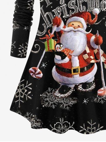 Plus Size Christmas Tree Fruit Santa Clause Penguin Snowflake Candy Print T-shirt - Black - S