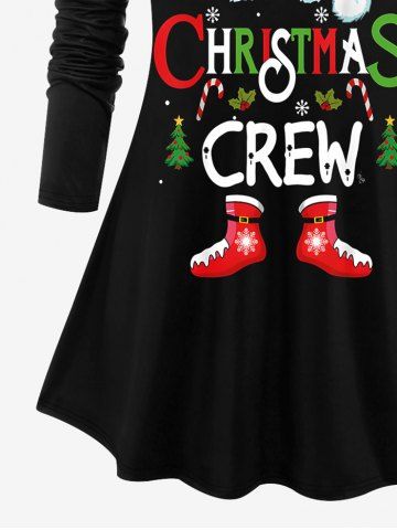 Plus Size Christmas Tree Hat Boots Candy Snowflake Print T-shirt - Black - Xs