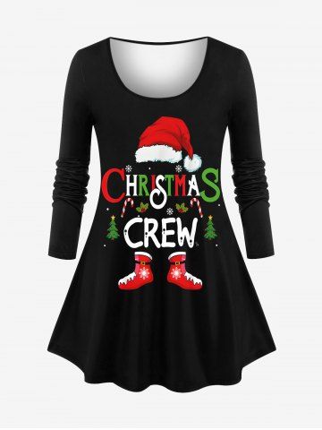 Plus Size Christmas Tree Hat Boots Candy Snowflake Print T-shirt - Black - 4x