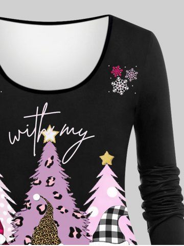 Plus Size Christmas Tree Hat Santa Claus Snowflake Letters Stars Print Long Sleeves T-shirt - Black - M