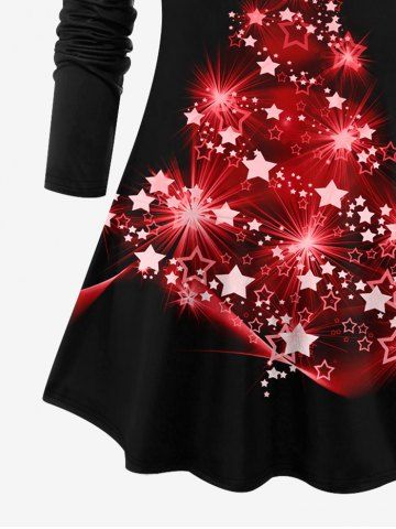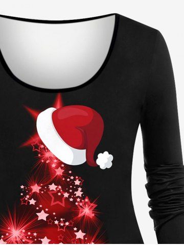 Plus Size Christmas Tree Hat Star Glitter 3D Print T-shirt - Red - L