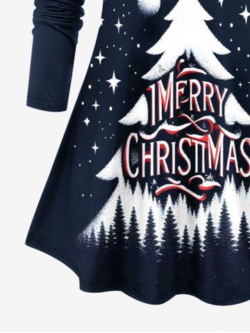 Plus Size Christmas Tree Hat Stars Print Long Sleeves T-shirt - Navy Blue - 3x