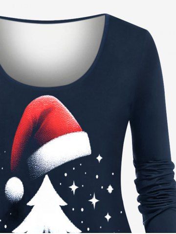 Plus Size Christmas Tree Hat Stars Print Long Sleeves T-shirt - Navy Blue - 5x