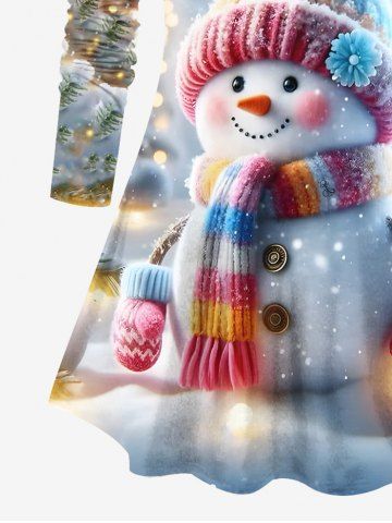 Tops > Plus Size Christmas Tree Light Gloves Hat Snowman Snowflake Print T-shirt
