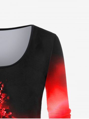 Plus Size Christmas Tree Print Ombre T-shirt - Red - 3x | Us 22-24