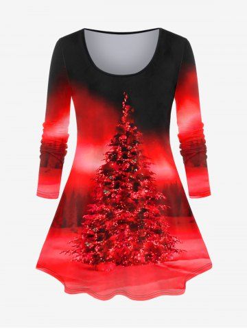 Plus Size Christmas Tree Print Ombre T-shirt