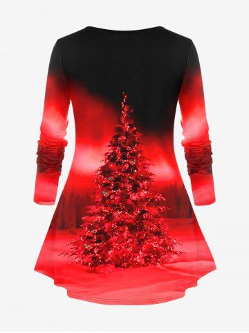 Plus Size Christmas Tree Print Ombre T-shirt - Red - 4x | Us 26-28