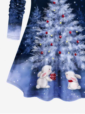 Plus Size Christmas Tree Rabbit Snowflake Star Glitter 3D Print T-shirt - Blue - L